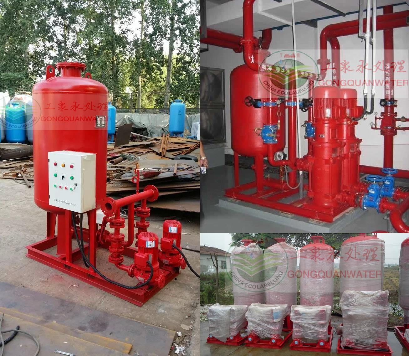 消防供水設備是由隔膜式氣壓罐、水泵、遠傳壓力表、閥門、管道及電控柜等組成。是消防給水系統理想的消防增壓穩壓設備,它能使消防管道系統始終保持不利點消火栓及自動噴水所需的壓力,而且能使壓氣罐始終貯有所要求壓力的消防水量,一旦發生火災,確保消火栓等消防設備可以立即投入撲救。