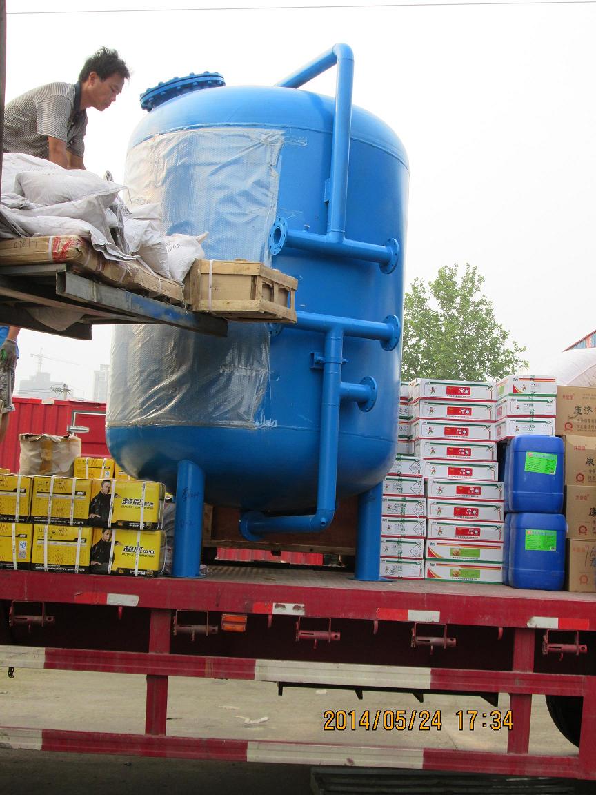 該砂濾器設備結構簡單、運行、反洗比較方便,其操作主要是通過調節5個閥門,改變水的方向改變,運行時是上進下出,反洗的是下進上出,再通過排污閥將反洗的污水排出,然后通過正洗,直至出水清澈干凈為止,裝填石英砂應注意:截污層石英砂規格0.5-1.0mm或1-2mm,標準濾層填充高度為1200mm。