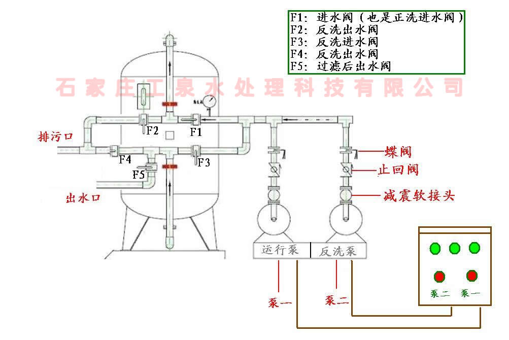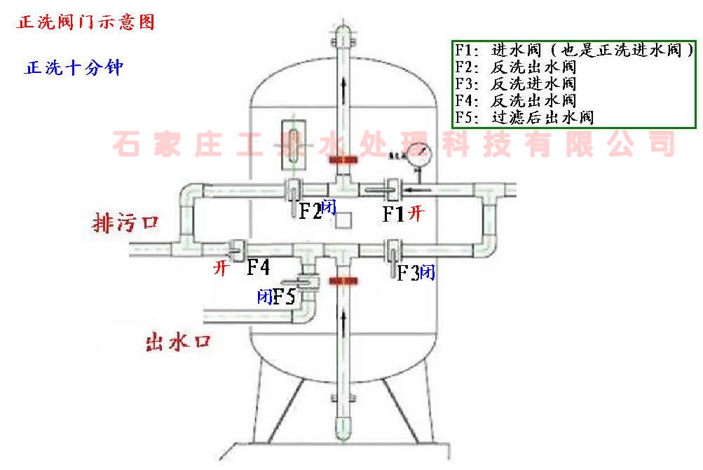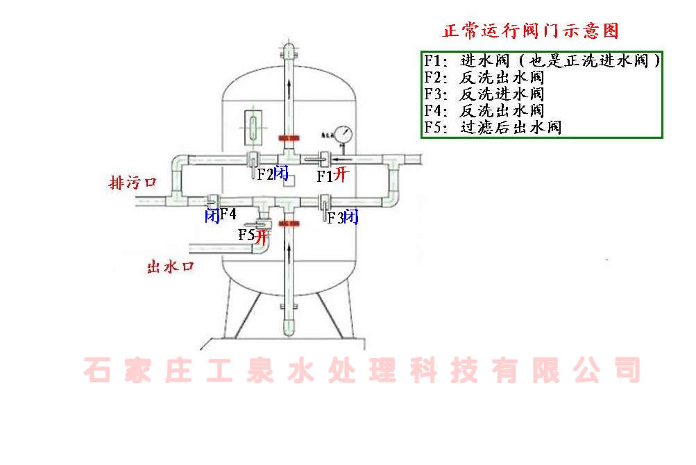 五口(石英砂過濾器)砂濾器正洗反洗閥門操作示意圖